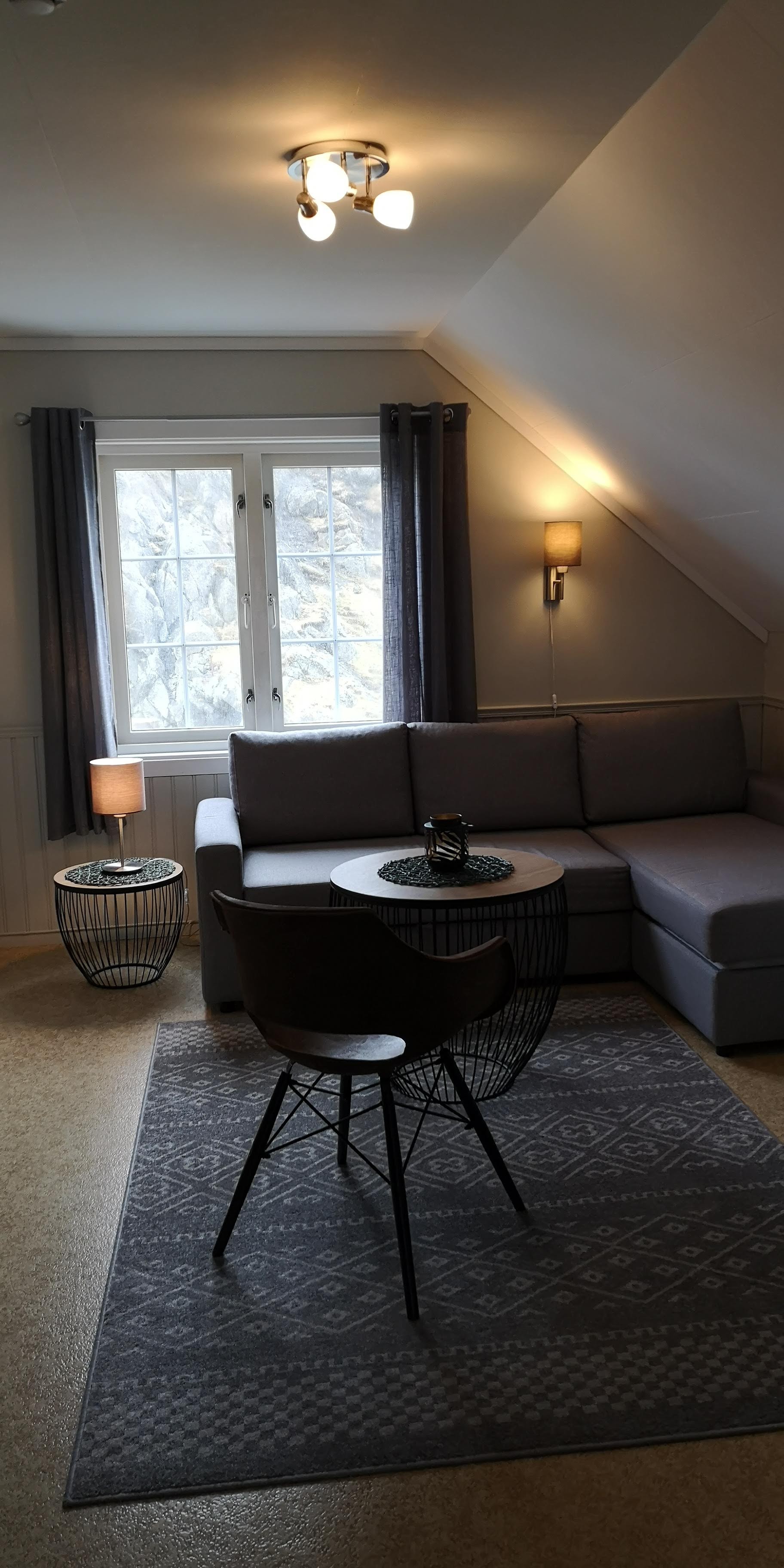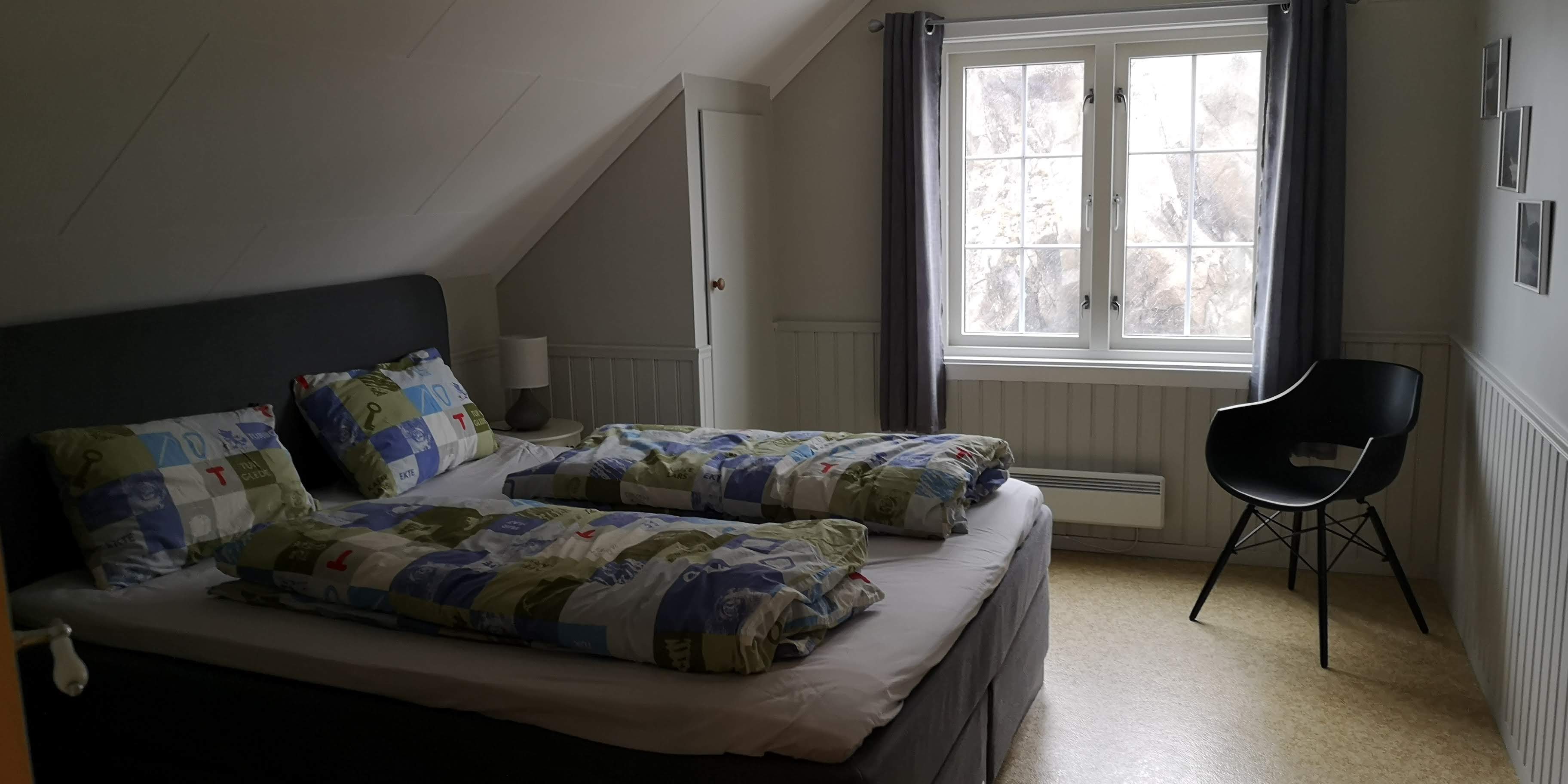 Stormsuiten er i øverste etasje i hovedhuset på Kråkenes Fyr. Her er soverom med dobbeltseng, stue med dobbel sovesofa, spisestue, kjøkkenkrok og bad. Stormsuiten må leies som en enhet og har sengeplass for inntil 4 personer.