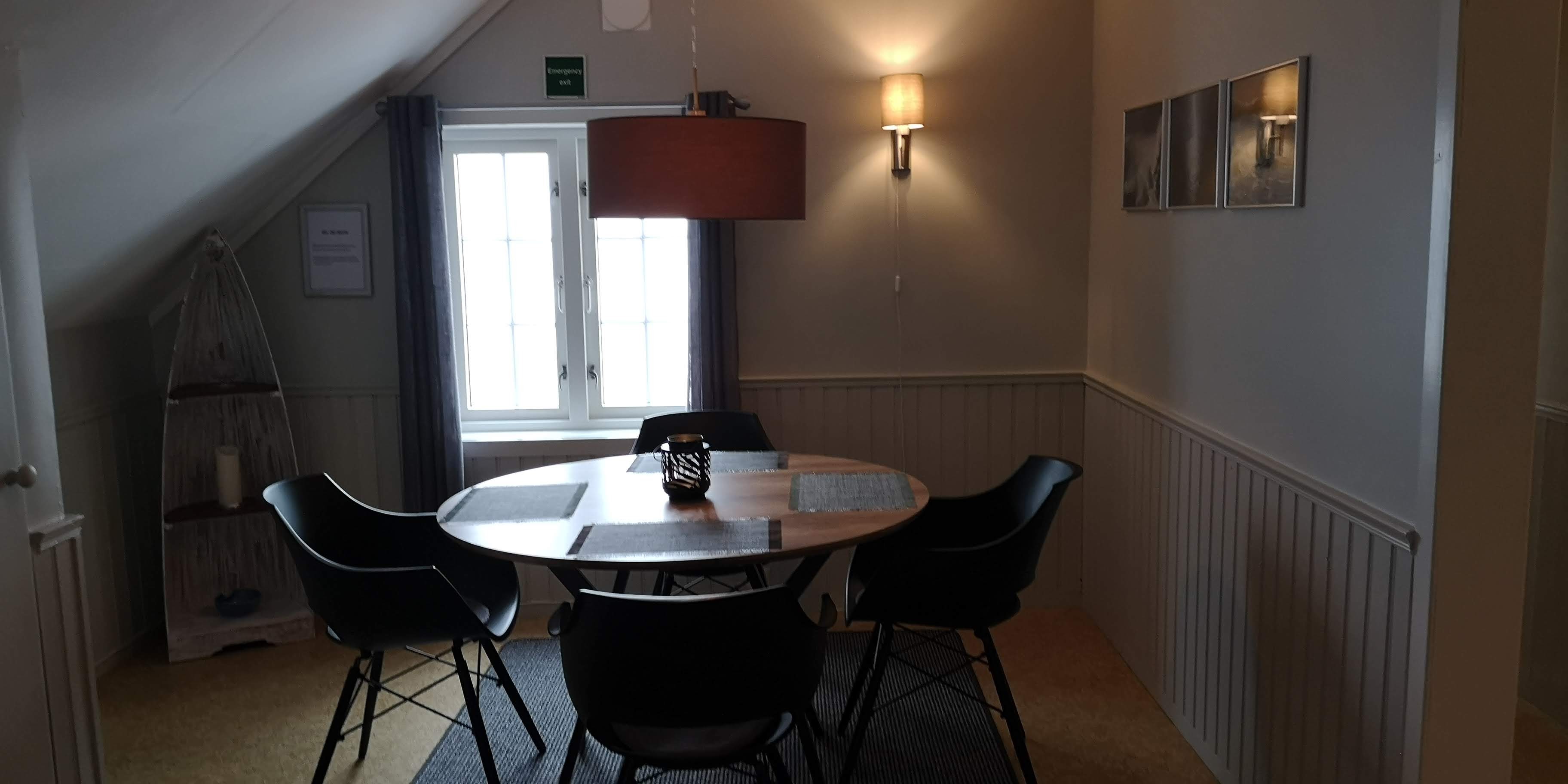 Det er røykvarsler i alle rom. Brannvarslingstavle er i kjelleren – der du går opp til fyrlykta.