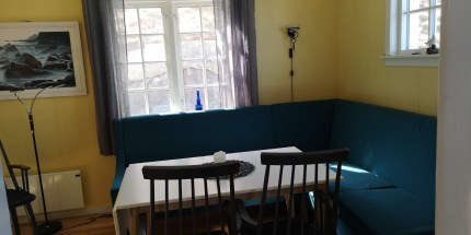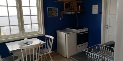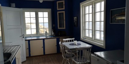 Huset har felles kjøkken med kjøleskap, komfyr, kaffetrakter og vannkoker. Kjøkkenet er ellers godt utstyr med dekketøy og utstyr.